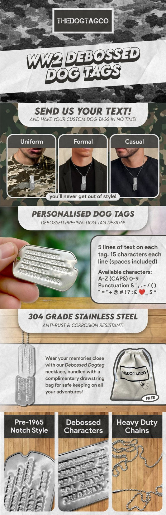 I am delighted with the dog tags I wear the every day, and I am very happy with how fast it was delivered. I will recommend to my friends and family.