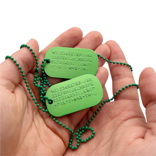 • Custom Military Dog Tag (Green PAIR Set with Green Chains) - TheDogTagCo